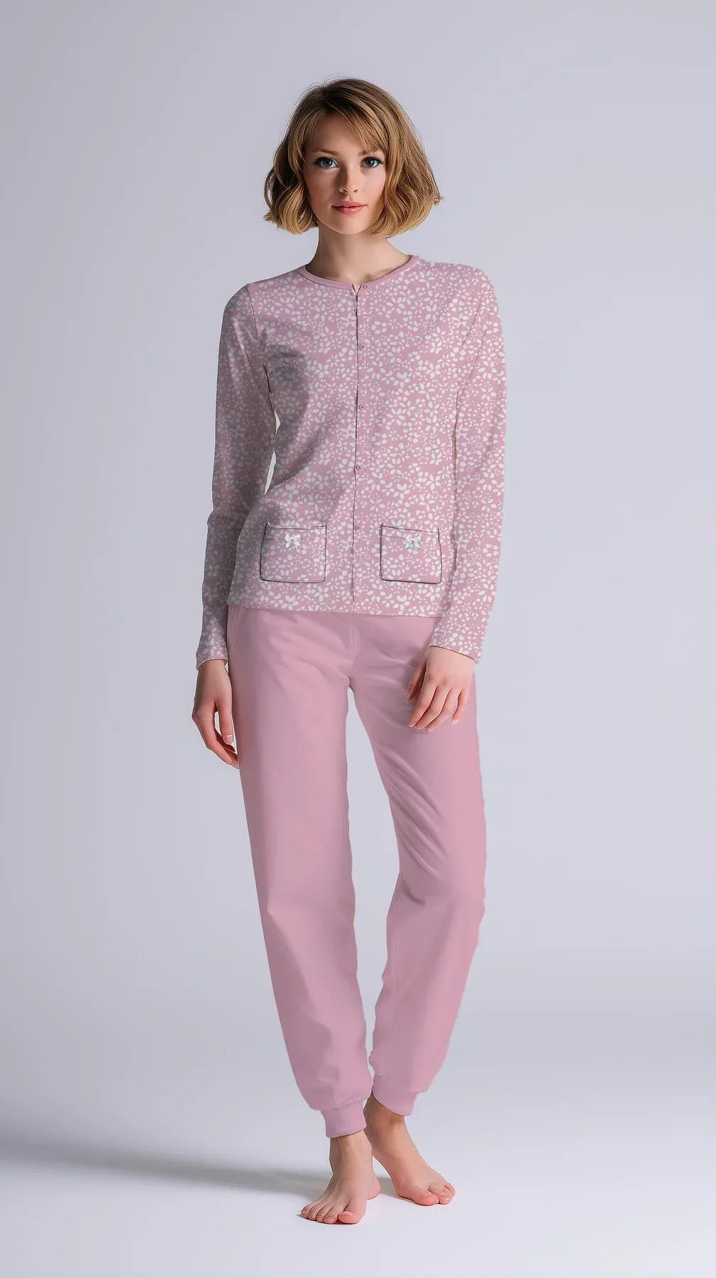 Pigiama Donna Manica Lunga Pantalone Lungo Aperto - Kisené