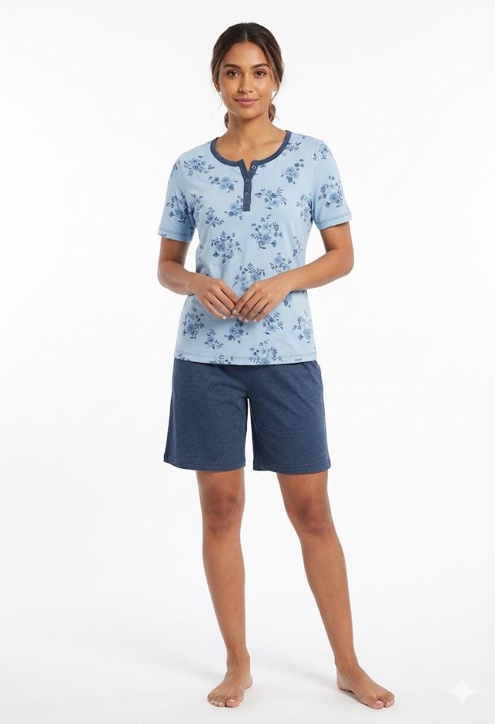 Goditi la leggerezza e la morbidezza del pigiama corto da donna Kiwear, in puro jersey. Questo set versatile è ideale per un sonno confortevole o per rilassarti a casa con stile. Il tessuto traspirante accarezza la pelle, offrendo una sensazione di freschezza duratura. Scegli Kiwear per un riposo impeccabile e un look casual chic.