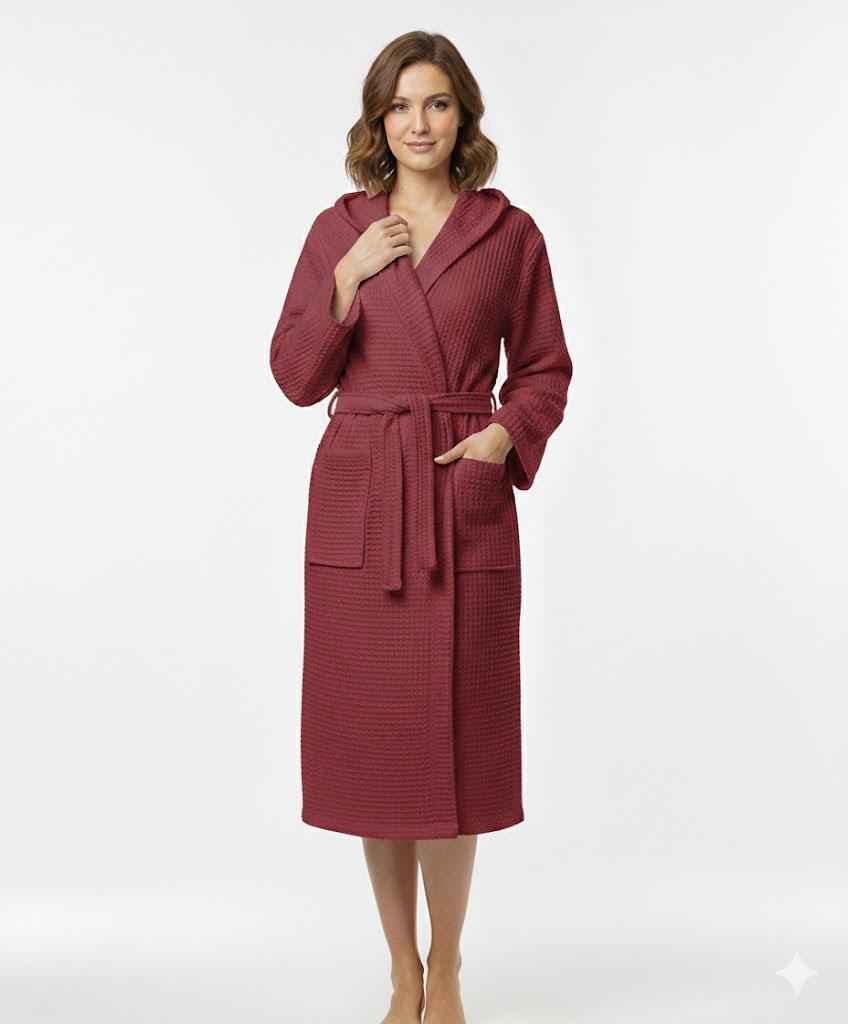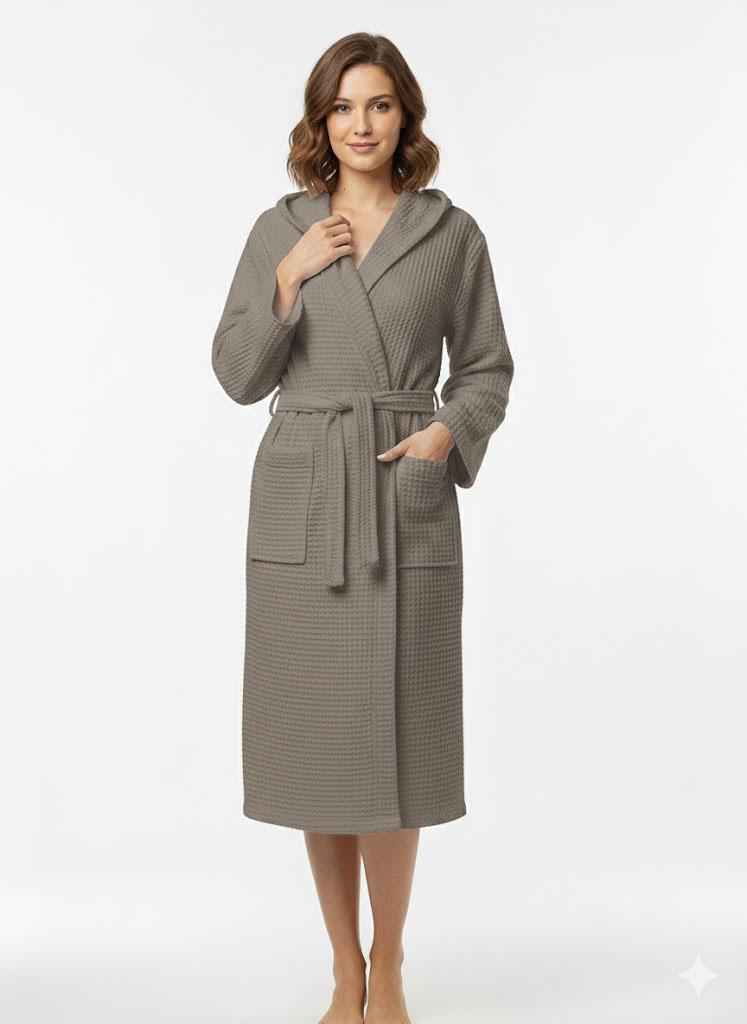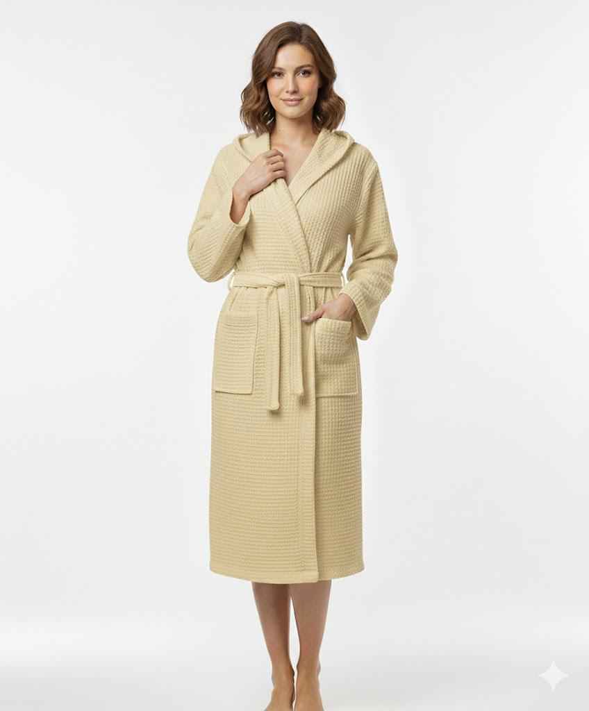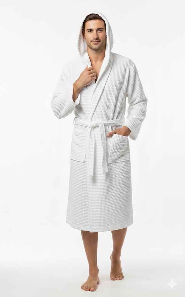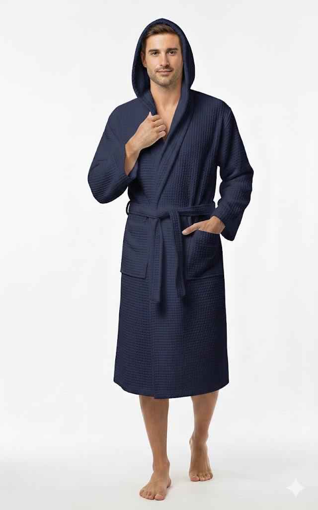 Un accappatoio in nido d'ape morbido e traspirante, ideale per il massimo comfort dopo la doccia o il bagno.