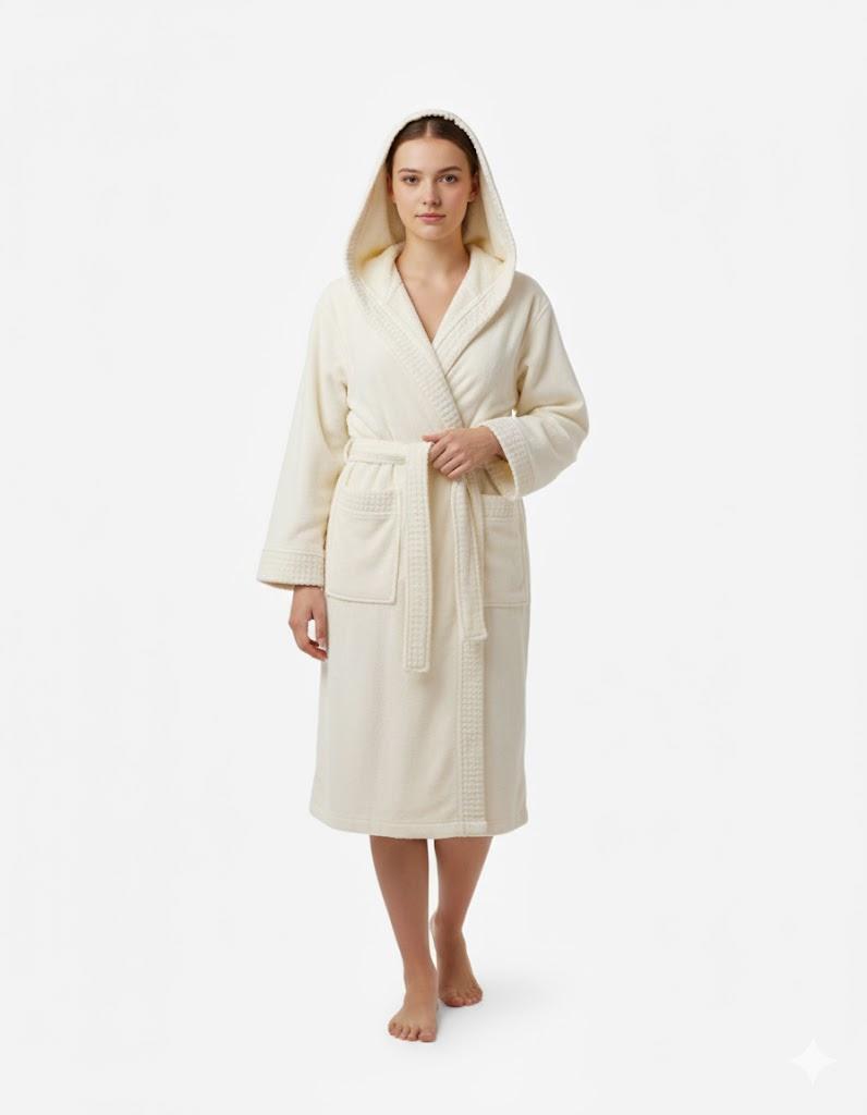 Un accappatoio in nido d'ape morbido e traspirante, ideale per il massimo comfort dopo la doccia o il bagno.